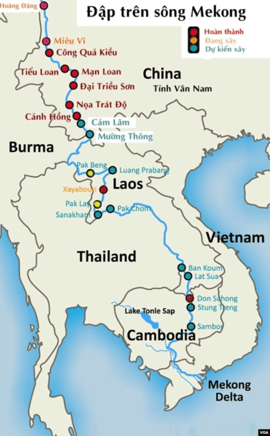 Vậy mà đã 62 năm kểtừkhi Liên Hiệp Quốc khai sinh Ủy Ban Sông Mekong [1957] và cũng đã 24 năm từ ngày thành lập Ủy Hội Sông Mekong[1995]. Tính đến nay 2019, Bắc Kinh đã xây xong 11 con đập thủy điện khổng lồ/ mega-dams (6,7) chắn ngang dòng chính sông Lancang Jiang, tên Trung Quốc của con Sông Mekong chảy trong lãnh thổ TQ với lượng điện sản xuất đã lên tới 21,300 MW và TQ vẫn đang tiếp tục xây thêm 19 con đập khác; Thái Lan ngoài các con đập phụ lưu, còn có kế hoạch chuyển dòng lấy nước từ sông Mekong, và nay hai nước Lào và Cambodia còn có thêm dự án 12 đập dòng chính hạ lưu. Ngoài ra còn hàng trăm con đập phụ lưu đã và đang xây trên khắp lưu vực Sông Mekong, kể cả trên Cao nguyên Trung phần Việt Nam.