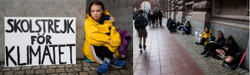Cuối cùng, vào ngày thứ Sáu 20 tháng 8 năm ngoái, sau nhiều ngày Âu châu bị nhiệt độ cao khác thường hoành hành và Thụy Điển trải qua một loạt cháy rừng, cô Greta quyết định đi biểu tình dù chỉ có một mình. Cô bãi học, đạp xe tới ngồi trước tòa nhà Quốc hội Thụy Điển với tấm bảng “Bãi lớp cho khí hậu thay đổi” (“skolstrejk för klimatet” hay “school strike for climate change”) và bảng liệt kê các dữ kiện khoa học về hiện tượng thay đổi khí hậu do cô viết tay. Cô cho biết việc cô biểu tình là do cảm hứng từ việc học sinh trường trung học Stoneman Douglas ở Florida bãi trường biểu tình chống lại luật lệ kiểm soát vũ khí lỏng lẻo sau vụ nổ súng hồi tháng 2 đầu năm ngoái đã làm 17 người tử thương. Greta cho đây là cách tốt nhất để lôi kéo sự chú ý của dư luận.