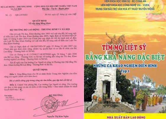 – Ngày 7 tháng 11 năm 2011, bà Nguyễn Thị Kim Ngân, Bộ Trưởng Bộ Thương Binh & Xã Hội, đã ký quyết định tặng bằng khen cho 38 nhà ngoại cảm “có nhiều đóng góp trong công tác tìm kiếm qui tập hài cốt liệt sỹ.”