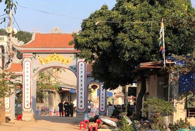| Công an, cảnh sát canh trước ngõ nhà cụ Lê Đình Kình chiều 10 Tháng Giêng. (Hình: Thanh Niên) |