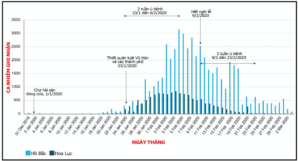 Nhà nước Trung cộng đã chọn biện pháp cách ly bắt buộc (thiết quân luật) ngay từ ngày 23/1/2020, kể cả các thành phố lớn, đông dân. Nội bất xuất, ngoại bất nhập. Nhà nào ở nhà nấy, cấm đi ra ngoài, trừ trường hợp bất khả kháng như đau yếu phải đến bệnh viện điều trị. Quân đội và cảnh sát thi hành lệnh thiết quân luật nghiêm nhặt. Học viện Sax thuộc ĐH Công nghệ Sydney thu thập số liệu nhà nước Trung cộng cung cấp cho WHO (tạm cho là chính xác) và làm một biểu đồ để thấy sự lợi ích của sự cách ly bắt buộc. Nhờ cách ly nghiêm nhặt, bắt đầu từ trung tuần tháng 3/2020 trở đi, số ca nhiễm bệnh và tử vong tại Hồ Bắc – Vũ Hán đã giảm thiểu một cách tích cực.
