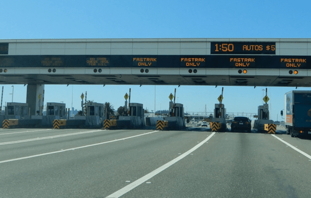 | Trạm thu phí lên cầu Bay Bridge vào San Francisco thường kẹt xe nay vắng vẻ vì nạn dịch Cô Vi (Ảnh: Bùi Văn Phú) |