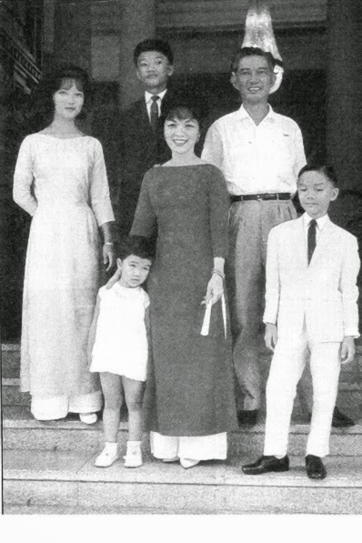 | Gia đình ô.b. Ngô Đình Nhu (Từ trái): Lệ Thủy, Trác, Lệ Quyên, Bà Nhu, Ông Nhu, Quỳnh (c.1961). Nguồn: Madame Ngo Dinh Nhu Facebook |