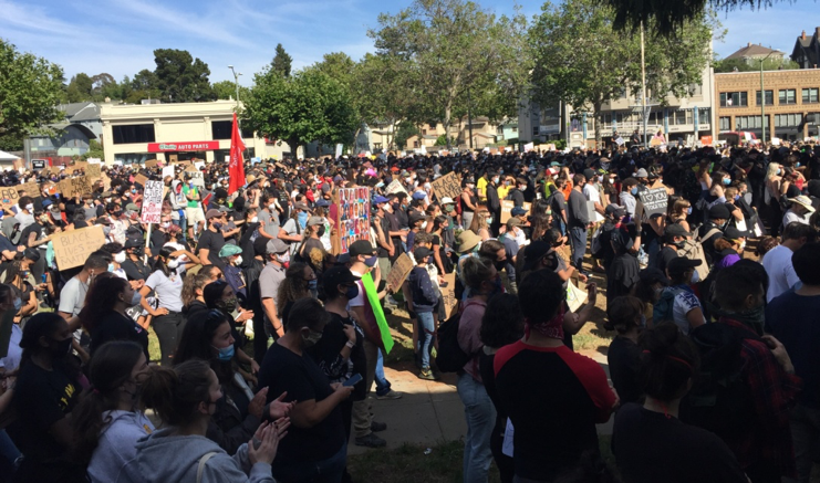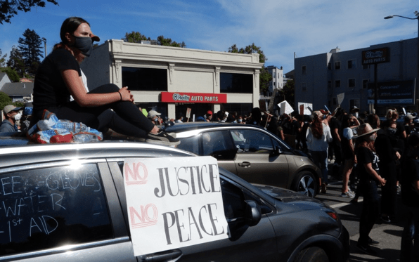 | Biểu tình ở Oakland, California chiều ngày thứ Hai 1/6/20 với 15 nghìn người tham gia trong ôn hoà và trật tự (Ảnh: Bùi Văn Phú) |
