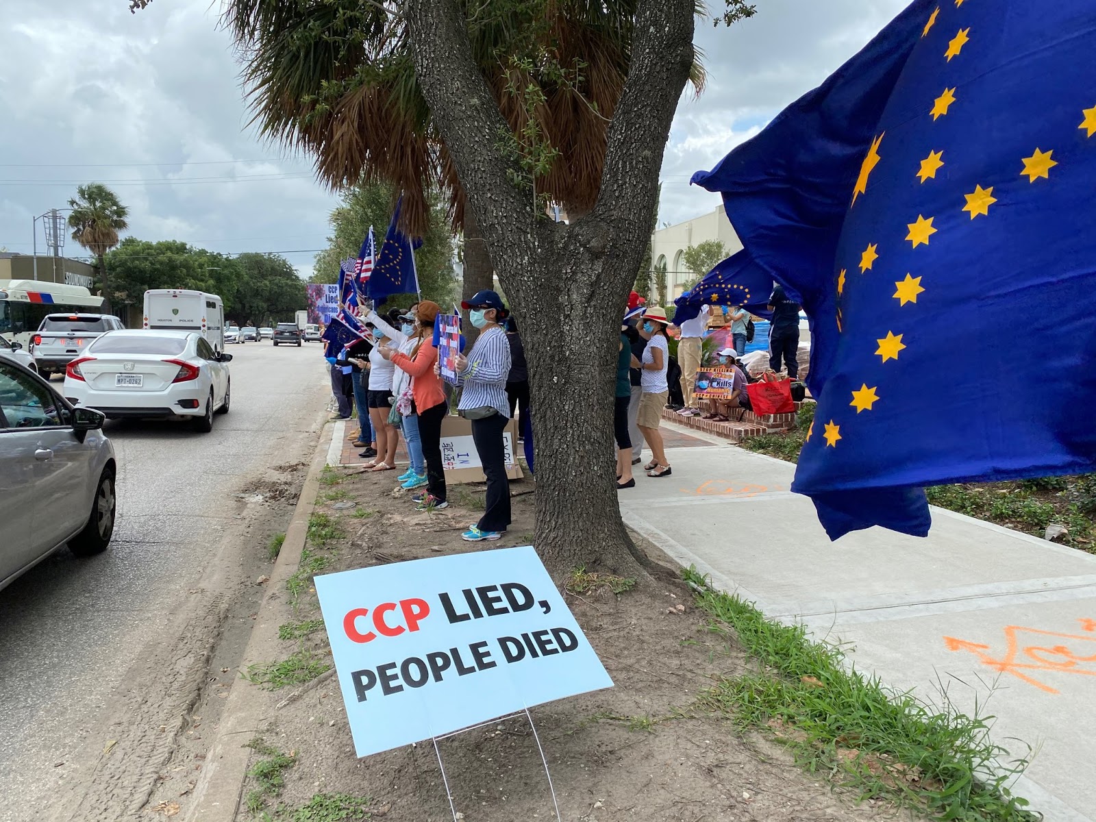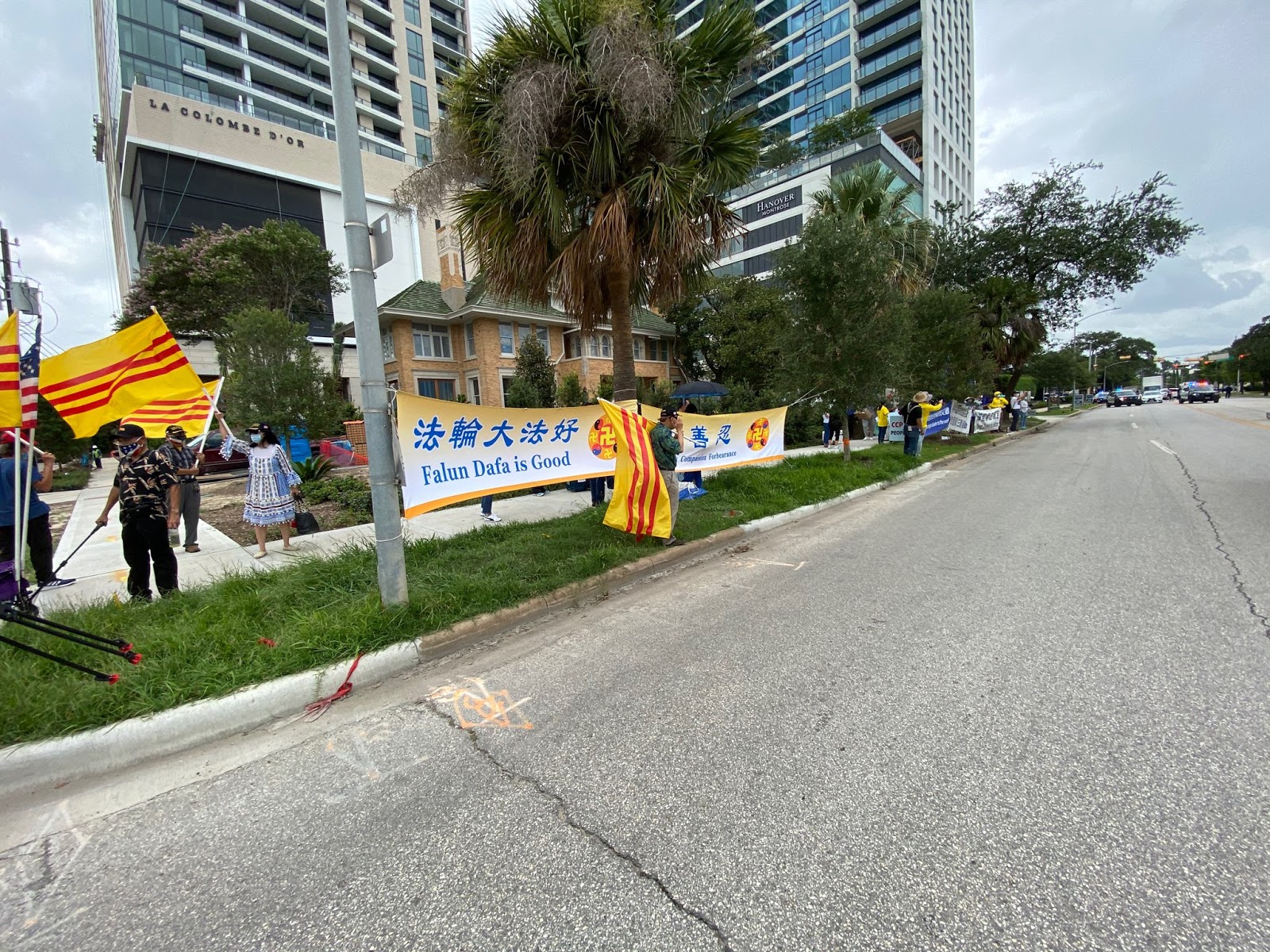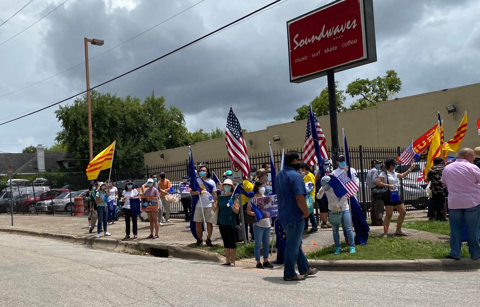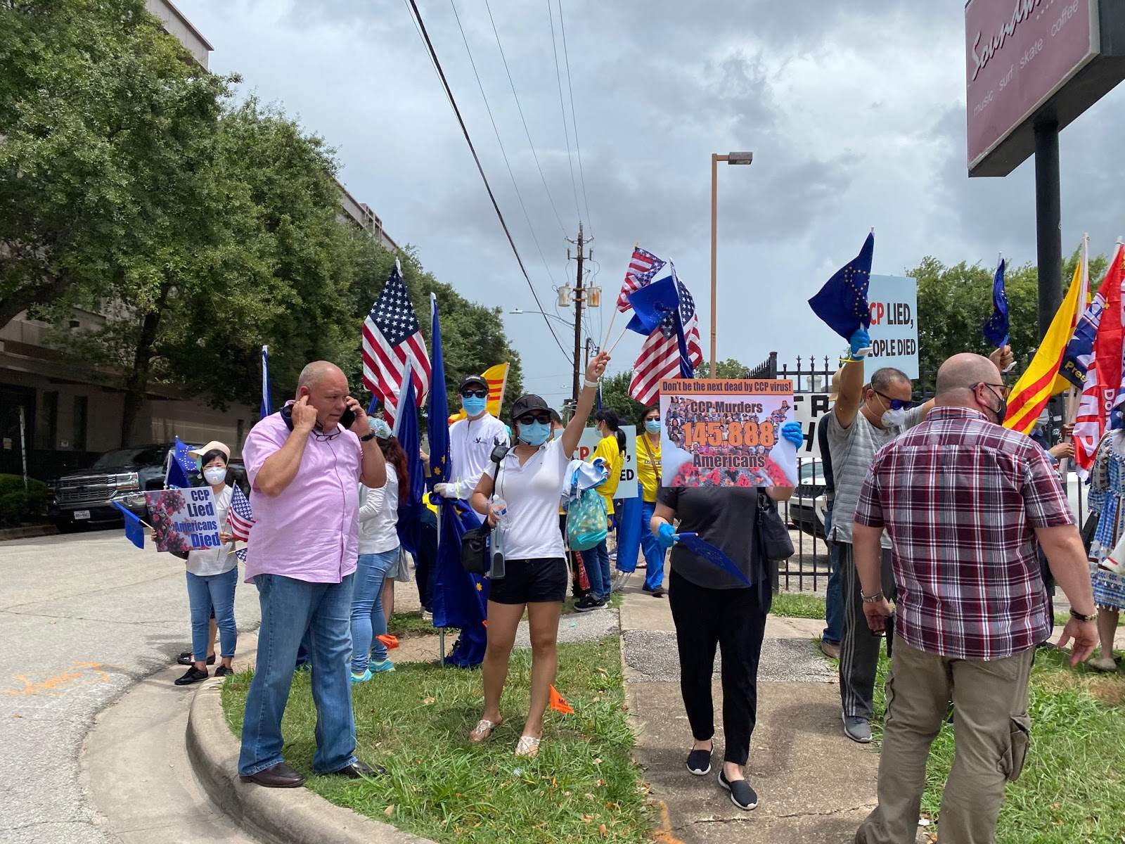 Trong khi đó, nhiều người Việt và một nhóm Hoa Kiều khoảng hơn 30 người đã tập trung bên ngoài khu vực lãnh sự quán để bày tỏ sự ủng hộ với quyết định đóng cửa của Hoa Kỳ đồng thời lên án nhà cầm quyền CSTQ đã đàn áp nhân quyền và là thủ phạm gây nên đại dịch Vũ Hán với hàng triệu người bị nhiễm và hơn nửa triệu người bị chết.