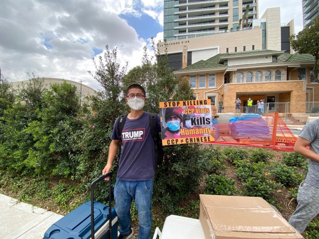 Mẹ Nấm (Danlambao) – Sau khi hung hăng tuyên bố Trung cộng phản đối lệnh đóng cửa và lãnh sự quán sẽ vẫn mở cho đến khi có thông báo mới, vào sáng sớm thứ Sáu, các quan chức Tàu cộng tại Houston đã dọn dẹp, đóng cửa văn phòng trước thời hạn. Trong khi một chiếc xe tải lớn màu trắng đến thu dọn đồ đạc thì bên ngoài đã có nhiều người biểu tình tập trung.