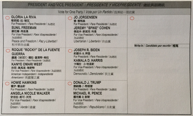| Các liên danh tranh chức tổng thống trên phiếu bầu ở California (Ảnh: Bùi Văn Phú) |