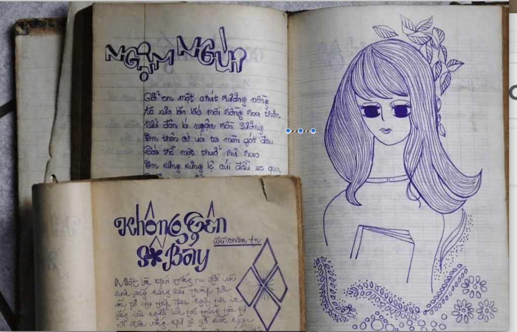 Ảnh Internet: Vở chép thơ nhạc KỶ NIỆM NGÀY XANH của 1 nữ sinh Trung học ở miền Nam trước 1975