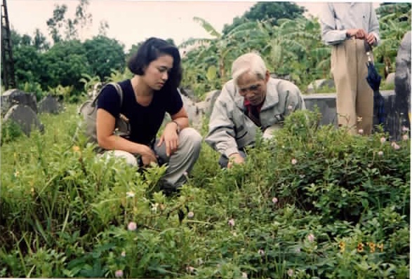 Suốt thời gian chúng tôi ở Hà Nội ông đến thăm nhiều lần vì khách sạn chúng tôi ở gần nhà ông trong khu phố cổ. Tôi nhớ một buổi sáng ông dẫn chúng tôi đi ăn bún riêu ở ngõ Tạm Thương. Lâu rồi không được ăn cua đồng, thấy ngon tuyệt. Ông tặng chúng tôi mấy quyển thơ và một cuốn băng do ông đọc. Và cả những lời thơ ông viết trên cuốn Tự Điển Việt Nam tặng chúng tôi, mang nặng hình ảnh quê hương: