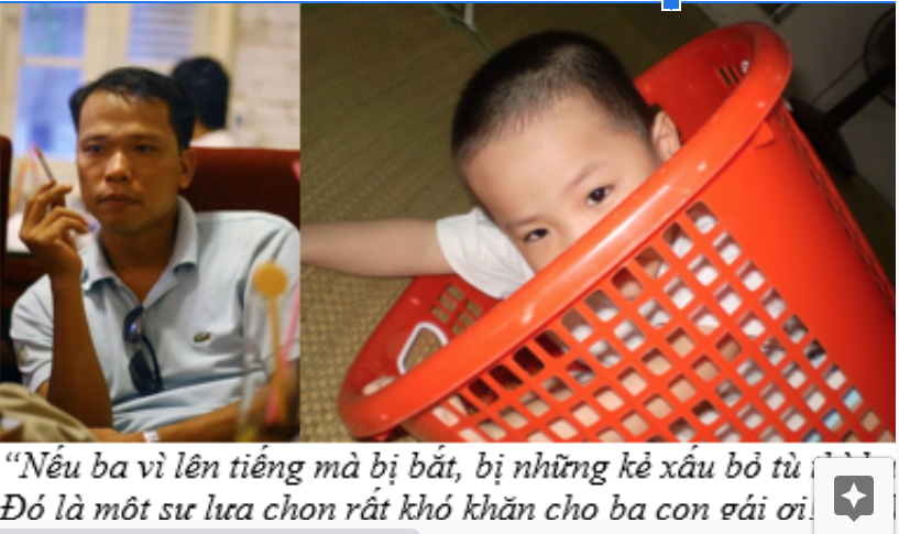 Nhưng nếu ba lựa chọn lên tiếng, lựa chọn đấu tranh cho những quyền và nhu cầu căn bản của con người, thì ba lại là người vô trách nhiệm với hai mẹ con. Nếu ba vì lên tiếng mà bị bắt, bị những kẻ xấu bỏ tù thì hai mẹ con con sẽ sống ra sao?