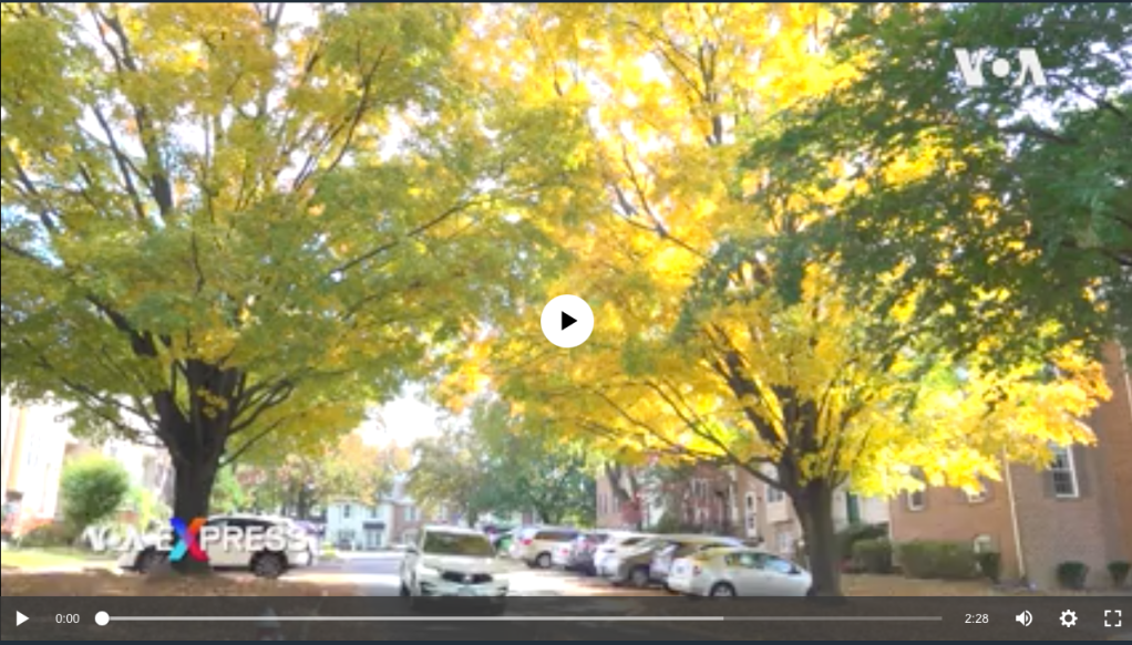Đây là hình ảnh một khu dân cư ở ngoại ô thủ đô Washington DC vào thời điểm này. Cả khu phố đã được nhuộm màu rực rỡ và lãng mạn của cây lá dịp cuối thu. Chút nắng nhẹ trong thời tiết se se lạnh càng khiến cho quang cảnh thêm phần hấp dẫn. Những chậu cúc đã nở đầy bông trên những bậc thềm nhà…