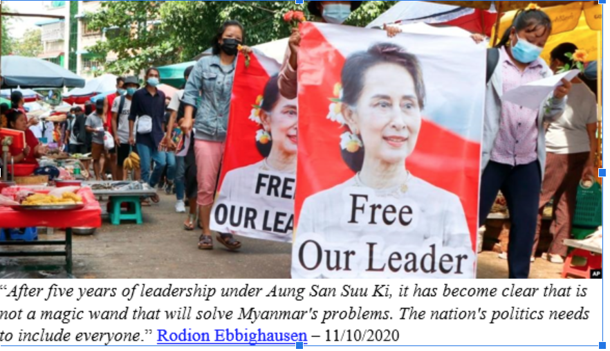 Tôi thành thực không tin rằng Burma có chút tương lai sáng sủa nào trên Con Đường Tơ Lụa Mới của Tập Cận Bình, và xem ra thì đất nước này cũng chả còn có lựa chọn nào khác nữa. Cũng y như Miên, Việt với Lào thôi. Suu Kyi của lòng tôi, và Đảng Liên Đoàn Quốc Gia Vì Dân Chủ (của nàng) quả đã làm cho không ít người thất vọng!