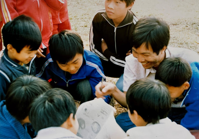 | Tác giả gặp gỡ thiếu niên trong một công viên ở thành phố Quảng Châu, Trung Quốc năm 1985 (Ảnh: Bùi Văn Phú) |
