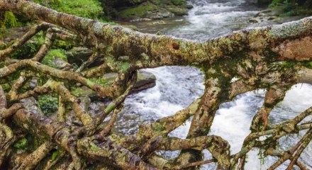 Kiệt tác cầu bằng rễ cây sống bắc qua sông ở Ấn Độ