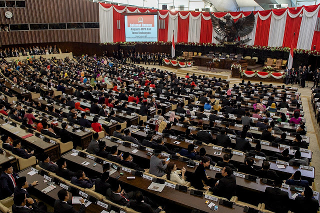 | Lễ nhậm chức Tổng thống của Hội đồng tư vấn nhân dân (People’s Consultative Assembly, Majelis Permusyawaratan Rakyat, MPR) tại khu phức hợp Quốc hội Jakarta, 2014. Hình Wikipedia |