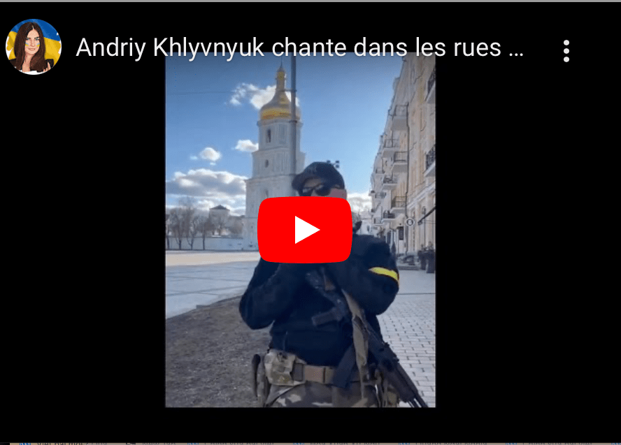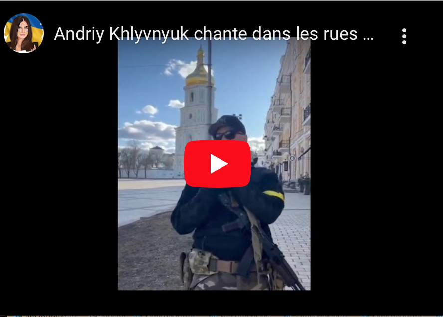 Câu chuyện của cô không phải là độc nhất vô nhị. Vào ngày 27 tháng Hai, 2022, ngày mà quân Nga chiếm Bucha, Andriy Khjynvnyuk, ca sĩ chính của băng nhạc rock Boombox và là thiện nguyện viên của Lực Lượng Phòng Thủ Lãnh Địa cũng có mặt ở Kyiv, đầu đội mũ khúc côn cầu của đội Yankees NY và mang theo một khẩu súng trường. Đứng trước nhà thờ cổ kính từ thế kỷ Mười Một, anh trình diễn bài quốc ca “đây là Viburnum Đỏ trong Thảm Cỏ Xanh.