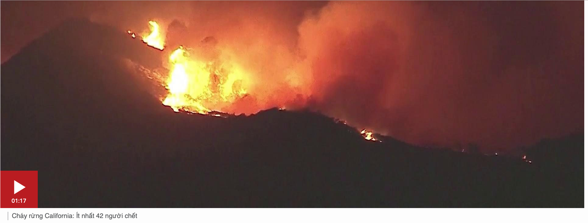 Ít nhất 228 người vẫn đang mất tích trong lúc Đám cháy Camp Fire vẫn tiếp tục hoành hành. Gần 7200 nhà cửa đã bị phá hủy, và ít nhất 15.500 người đang gặp nguy.