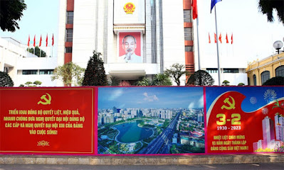 | Cờ hoa, băng rôn, phướn, pano cổ động chào mừng Kỷ niệm 93 năm Ngày thành lập Đảng Cộng sản Việt Nam (3/2/1930 – 3/2/2023) ở Hà Nội. Ảnh: Báo Tuổi Trẻ Thủ Đô |