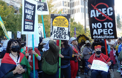 Hôm Chủ Nhật vừa qua, ở trung tâm thành phố San Francisco đã có hàng nghìn người xuống đường biểu tình phản đối APEC, đòi dẹp bỏ tổ chức này vì cho đó là nơi tập trung của tư bản để bóc lột dân nghèo khắp thế giới.