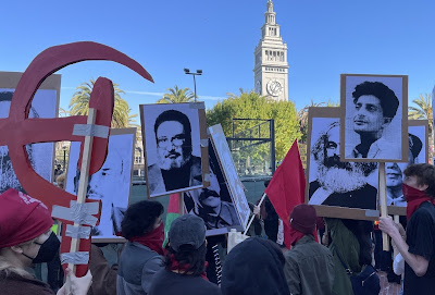 Trong khi đó có người biểu tình diễu hành giơ cao hình Marx, Lenin, Stalin, Mao. Giơ cao biểu ngữ đòi chấm dứt khai thác dầu hoả. Chấm dứt việc coi phụ nữ Philippines như những món hàng. Có người đứng phát báo “Red Star – Sao Đỏ”, có quầy bán sách báo cách mạng tán dương xã hội chủ nghĩa.