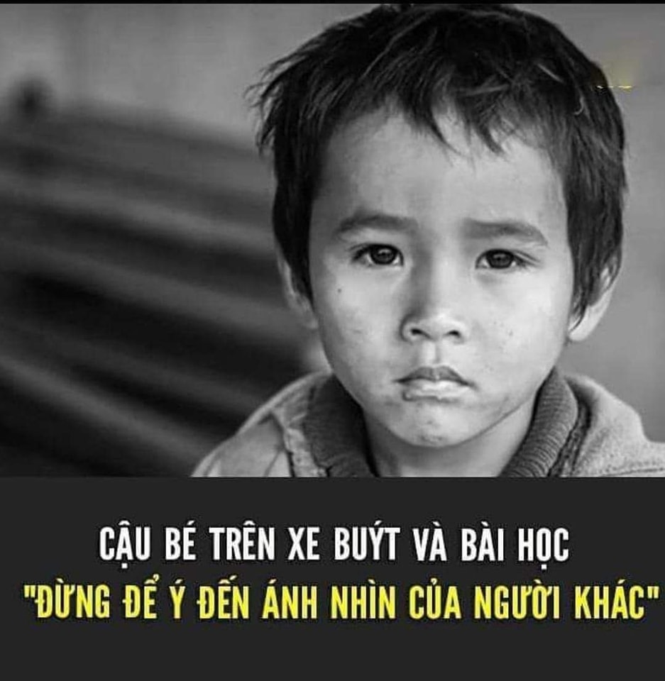 Người phụ nữ lặng người, ai ai trên xe bus cũng vậy. Rồi người đàn ông đứng bên cạnh lên tiếng kể hoàn cảnh của cậu bé: