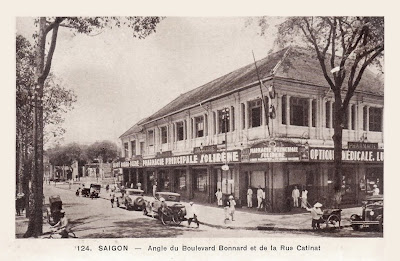 | Nhà thuốc tây Solirène ở góc đường Bonard-Catinat (Lê Lợi – Đồng Khởi) – Nguồn: virtual-saigon.net (xin lưu ý, danh từ riêng Bonard, người Pháp viết 2 cách: Bonnard và Bonard, song từ Bonard phổ biến hơn) |