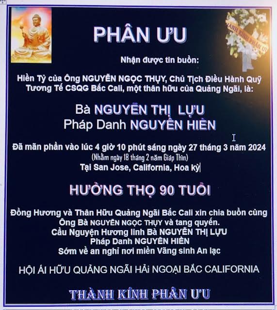 PHÂN ƯU- Hội Ái Hữu Quảng Ngãi