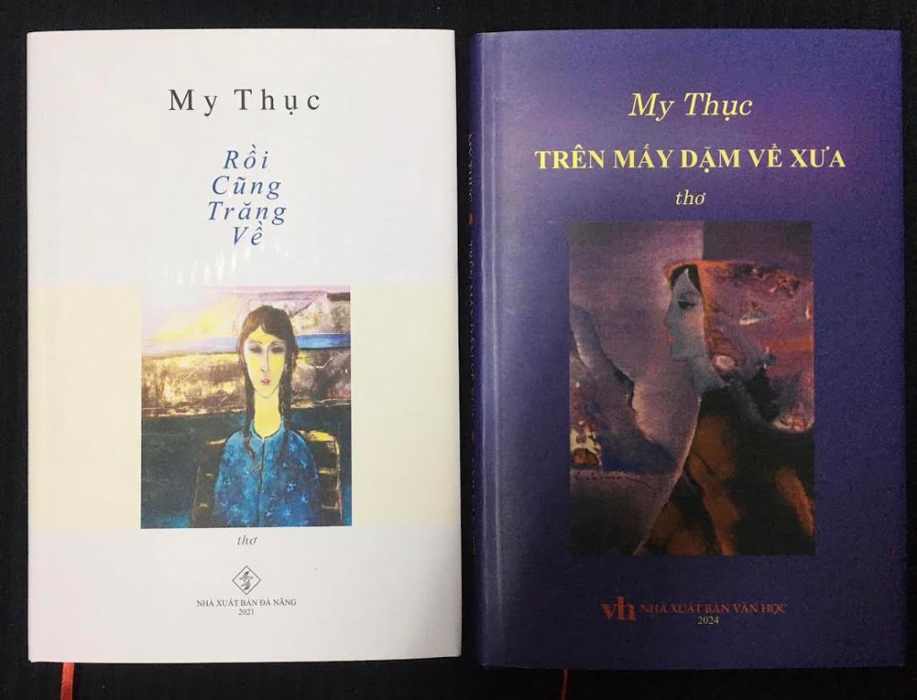 My Thục gửi tặng tôi hai tác phẩm: Rồi cũng trăng về (Nxb Đà Nẵng, tháng 10/2021) và tác phẩm vừa mới Trên mấy dặm về xưa (Nxb văn học, tháng 8/2024). Hai tập thơ là hai ấn phẩm xinh xinh, được trình bày bắt mắt, mỗi tập gồm 81 bài thơ trữ tình. Thế là qua 162 bài thơ, tôi đã đi vào thế giới tâm hồn của nữ thi sĩ My Thục để khám phá vẻ đẹp hai tập thơ mà nàng gửi tặng. Phần lớn là thơ tình. Thơ tình My Thục đẹp mà buồn. Nỗi buồn cũng sang trọng và quý phái. Xuyên suốt hai chặng đường thơ là lời tâm tình nhẹ nhàng sâu lắng. Ở đó có mối tình đầu một thuở. Ngược miền thời gian cùng thơ để nghe tiếng lòng tan chảy say đắm, ngọt ngào, của cả đổ vỡ chia biệt, ly tan. Dĩ nhiên vẫn có những bài thơ tươi vui hạnh phúc một thuở yêu người. Nhưng thơ tình buồn chiếm phần lớn trong cả hai tập thơ. Thơ My Thục diễn tả các cung bậc của tình yêu: tha thiết, đắm say và lãng mạn. Điệu buồn trong thơ cũng nhẹ nhàng nhưng da diết. Tình xưa giờ đã là dĩ vãng, dẫu không đi trọn đường tình nhưng vẫn là một tình yêu đẹp, để lại những ấn tượng sâu đậm trong thơ.