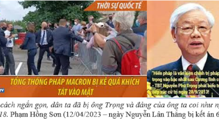 Phạm Hồng Sơn Viết Từ Xứ Người : Tại Sao Lại Tát ? Ngày 08 tháng Sáu năm 2021, Tổng Thống Pháp Macron bị tát vào giữa mặt khi vừa tới nói chuyện với một nhóm dân làng ở miền Đông-Nam nước Pháp. Người tát là một thường dân – thanh niên 28 tuổi. Bối cảnh xảy … Tiếp tục đọc